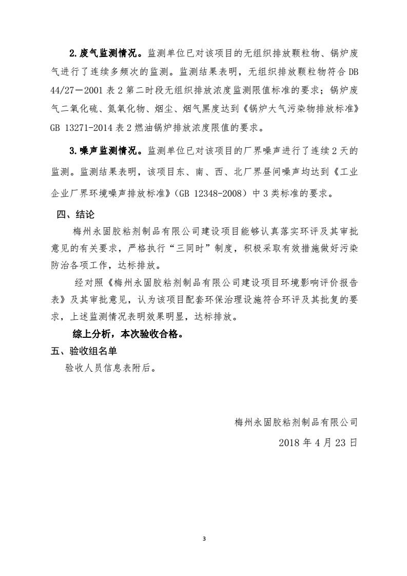 梅州永固粘結(jié)劑制品有限公司建設(shè)項目竣工環(huán)境保護(hù)驗收意見
